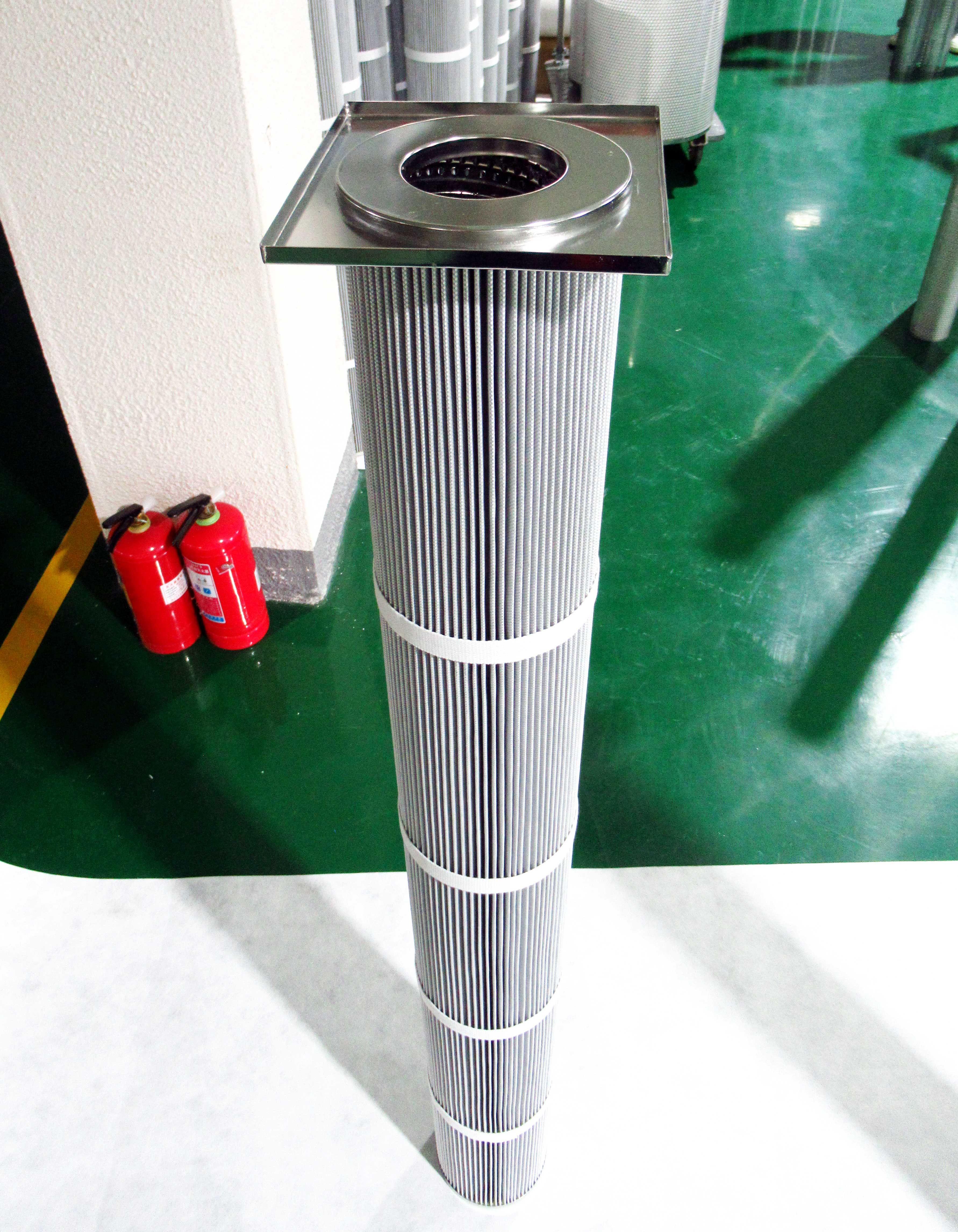 The dust filter element is specially designed for industrial dust removal, adapts to all types of powder, and has excellent performance. The filter material is made of high-quality coated polyester non-woven fabric (can be oil-proof, waterproof, anti-static, flame-retardant treatment), polyester long fiber filter paper, glass fiber filter material, etc., using international advanced wide pleated discount technology, uniform gap, ensure 100% effective filtration area and maximum operating efficiency, large filtration area, oil and water resistance, high filtration efficiency, large air volume, high strength and wear resistance, high filtration accuracy, low running resistance, low friction coefficient, and this filter can be repeated washing.
